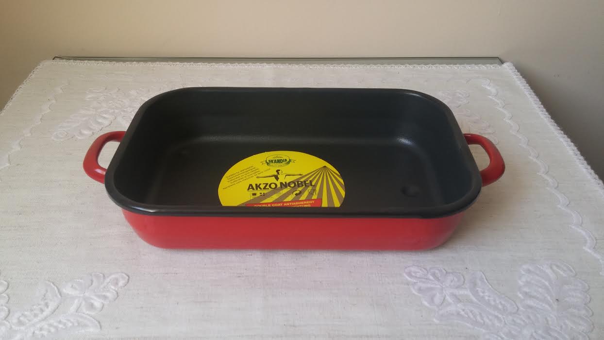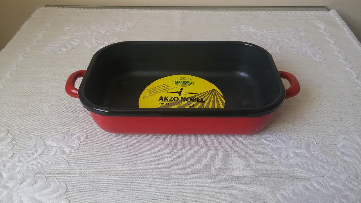 Bevonatos tepsi piros füles 32 cm
