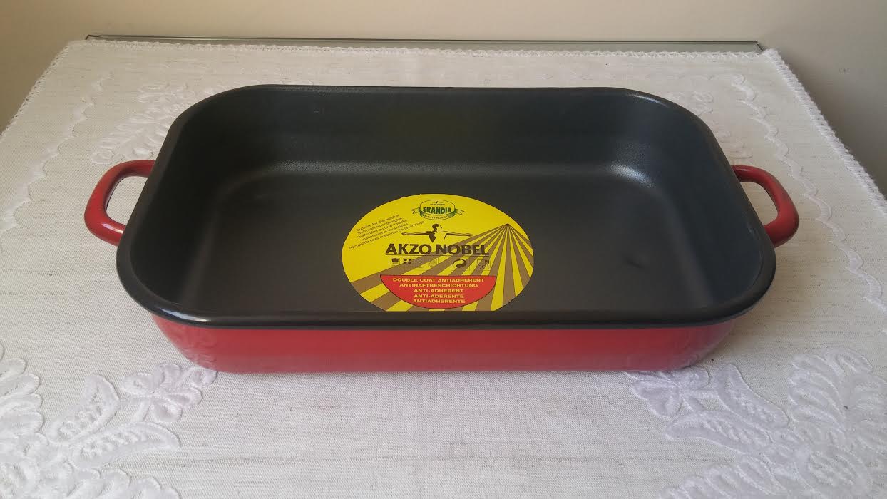 Bevonatos tepsi piros füles 36 cm